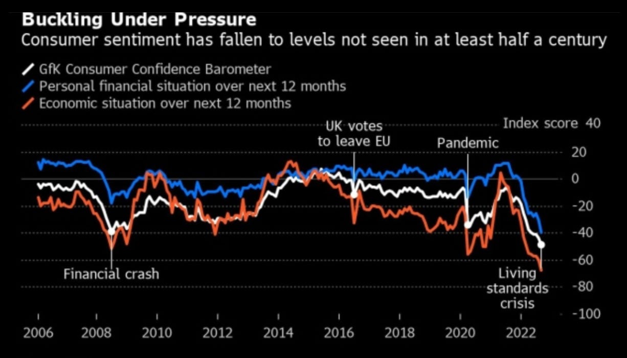 All of this has been met with a furious response from the Bank of England, which is raising interest rates faster than Donald Trump lies. Well, maybe not that fast. And that’s causing shockwaves to go through what’s left of Britain’s stable social structure. Banks are pulling mortgages. People are discovering they can’t afford their mortgages anymore. A wave of foreclosures and defaults is almost certain to occur.