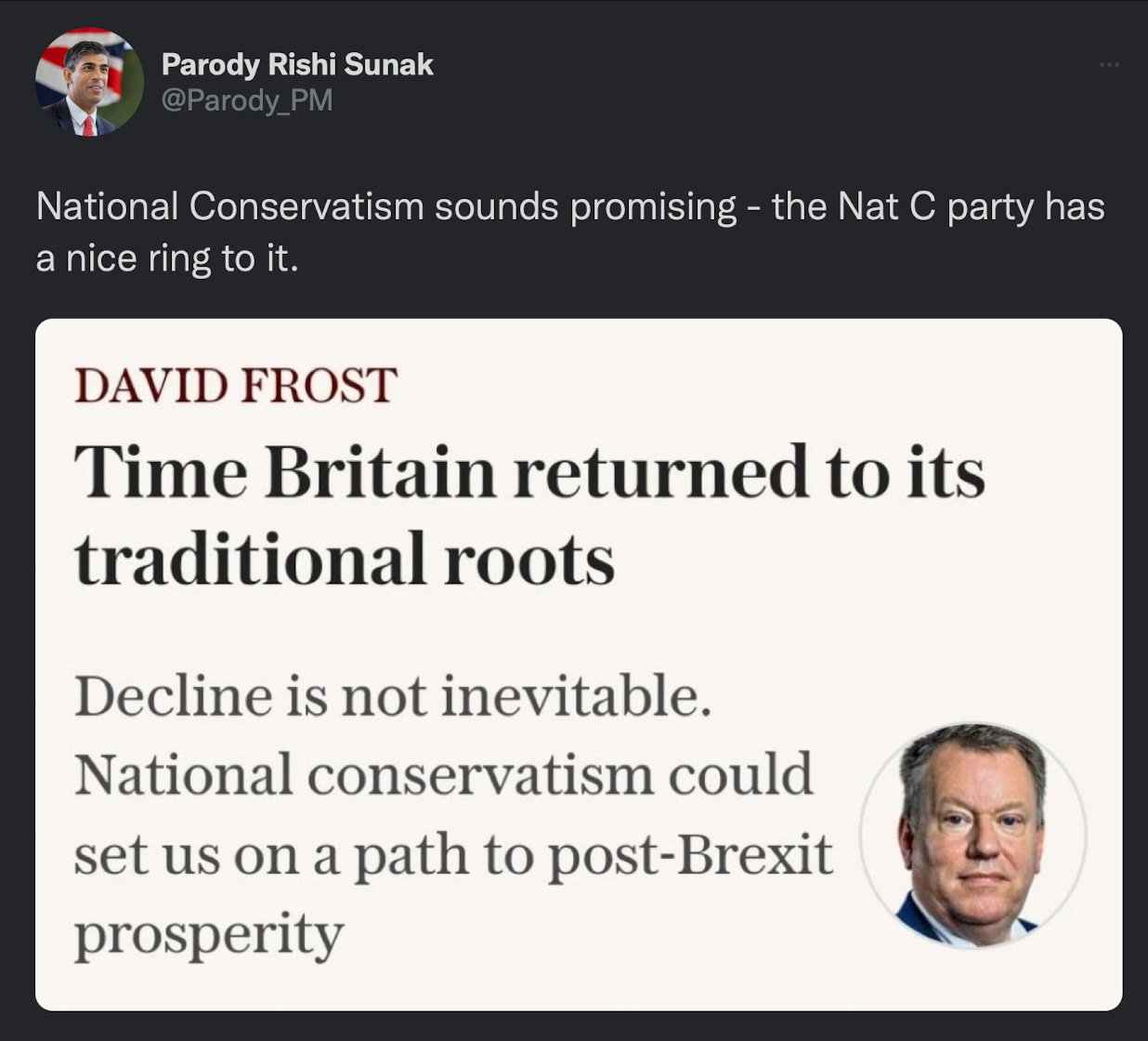 No wonder Twitter exploded in fresh horror at this lunacy. Sound, well, fashy enough to you? But this is one of Britain’s — at this point — most senior and experienced politicians. He wants to literally start a Nat-C party.
