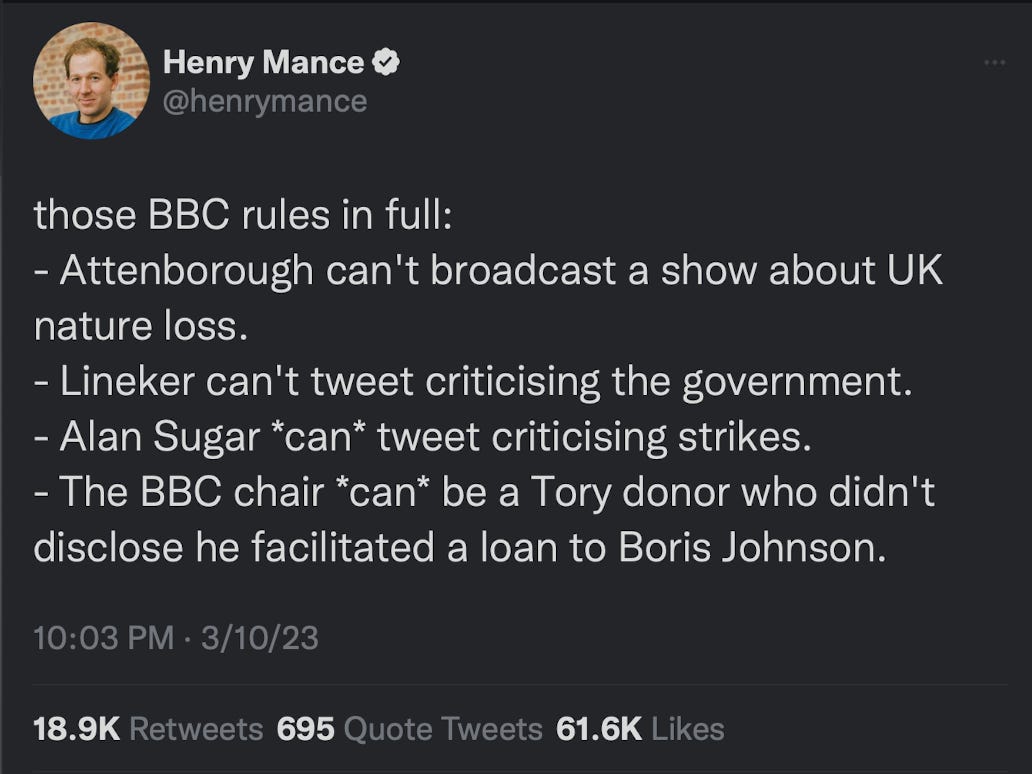 3) Lineker tweeted, in response to yet more scapegoating from the government, that “this is immeasurably cruel policy…in language that is not dissimilar to that used by the Germany in the 1930s.”
