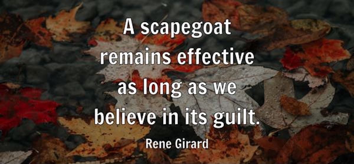 Let me put all that a little more formally. Inequality and downward mobility are causing a widespread loss of confidence, trust, and faith in institutions, as people who give up on them get radicalized by disinformation, misinformation, and Big Lies. And that, in turn, destabilizes democracy. At the center of this vicious cycle lies the figure of the…scapegoat.