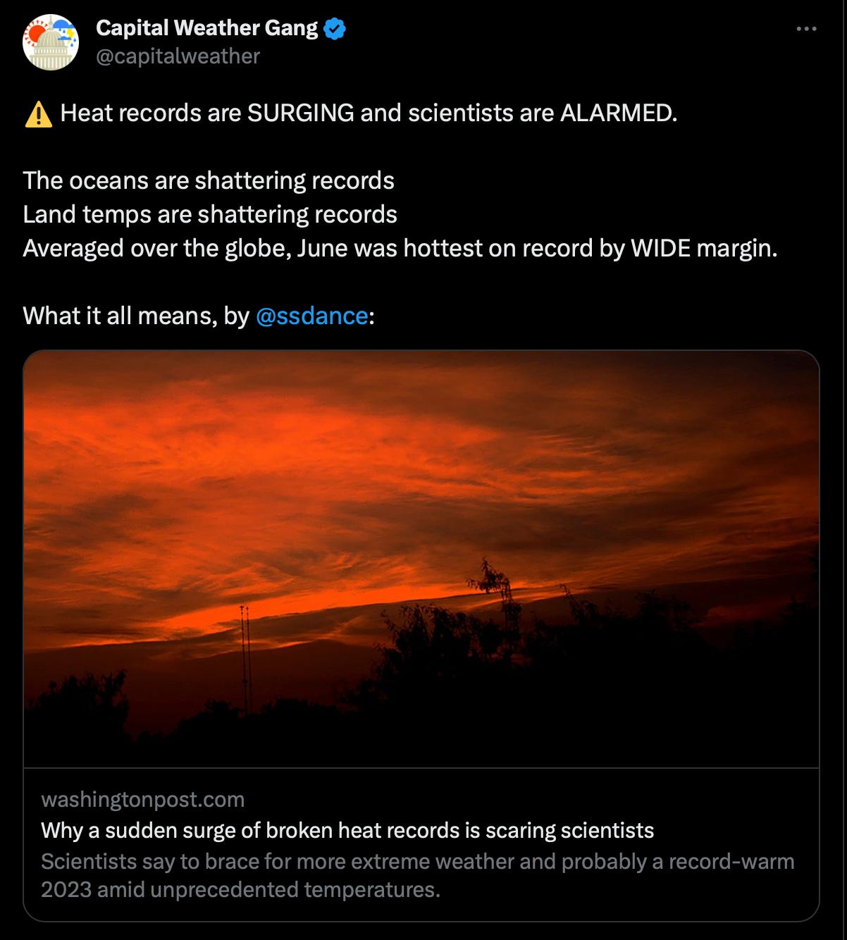 We just lived through the hottest day in over 100,000 years. Even that’s an understatement. Four of them in fact. And summer’s just begun.