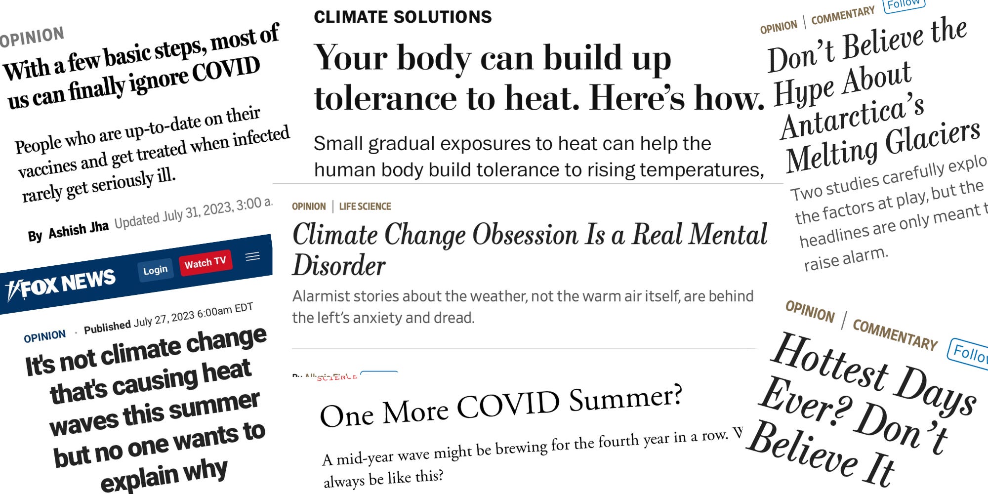 Call it the Great Gaslighting of the 2020s. Take a glance at some of the headlines above. “Climate change obsession is a mental disorder. “Your body can build up tolerance to heat. Here’s how.” “With a few basic steps, most of us can finally ignore Covid.” “One more Covid Summer. Will it always be like this?”