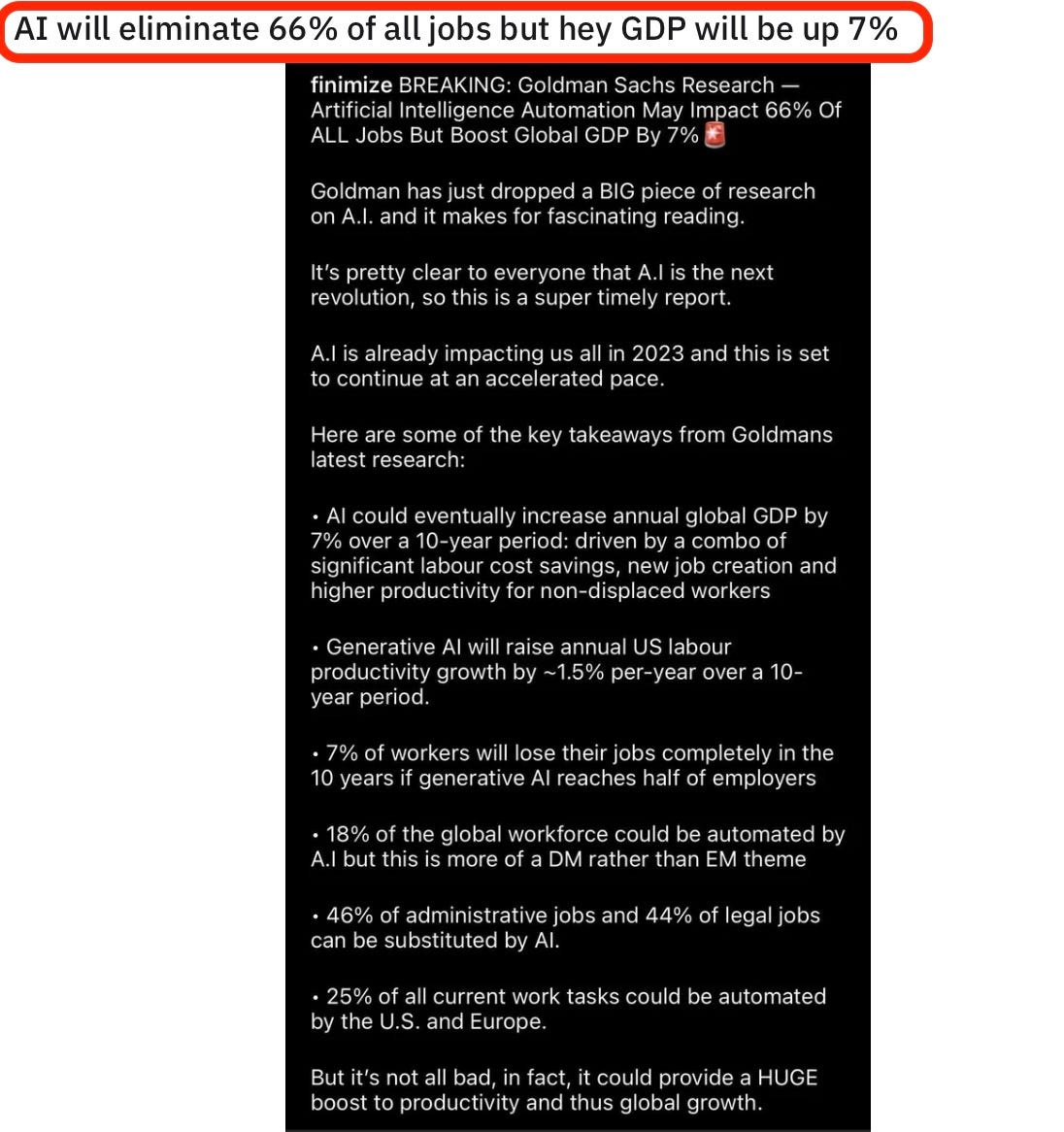 And then what? Because we’re already in an economy where people are stretched so thin that they’re using buy now, pay later to pay for groceries. That’s a last resort. They’re maxed out in every other way. They’ve tapped out their “credit,” their incomes have cratered in real terms relative to eye-watering inflation, they have no real resources left. What happens you take an economy stretched that thin…and pull? It breaks. Those layoffs will lead to delinquencies and bad debt which will cause bank failures, which will require the classic sequence of bailouts, shrunken public services, and lower investment. And then we’ll be in the first economic AI crash — right when it’s supposed to be booming.