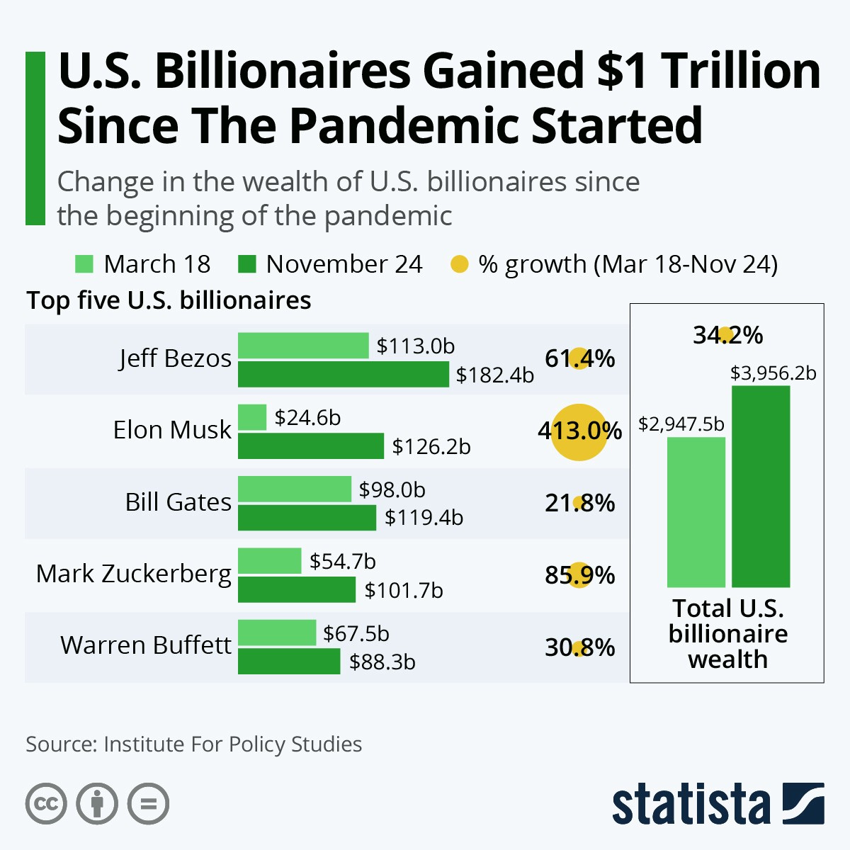 A full third of Americans can’t afford healthcare, food, and shelter. Pause. Take it in. That’s north of a hundred million people. Astounding — maybe even shocking — isn’t it? But when you put that together with Bezos’s comment, an almost absurdly grim reality still emerges. The poor cannot afford the basics of decent lives, while the rich cannot find ways to spend their fortunes.