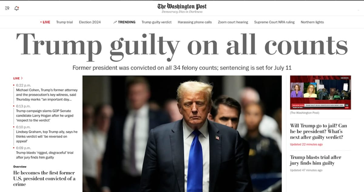 Furthermore, of course, it was a jury of twelve citizens who chose to convict Trump. That’s a powerful signal, too, about not just the health of a democracy, but of the state of civil society. Sure, it was a Manhattan jury, but of course, that’s the place of business involved here. When a jury of average people votes—can vote—to convict a former President, that’s an incredibly powerful signal about a society’s willingness to try and keep a democracy, and hang together, the robustness of its institutions.