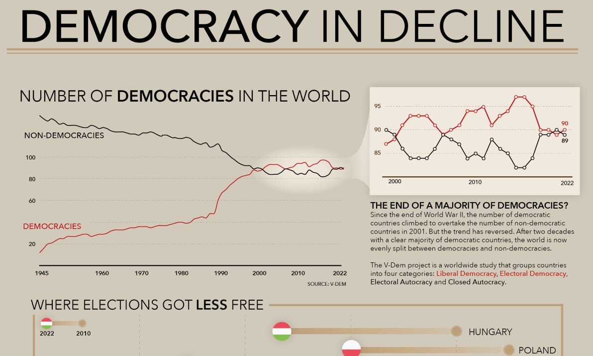 Look. There’s going to be that guy—you know the one, he reads the New York Times, and he’s about to scream, “democracy’s not losing!”—and yet he doesn’t know that in fact, it’s plummeted to just around 20% of the world in the last two decades, and is about to go much, much lower than that…don’t be that guy. He’s…Dunning Krueger guy. He doesn’t even know that he doesn’t know.