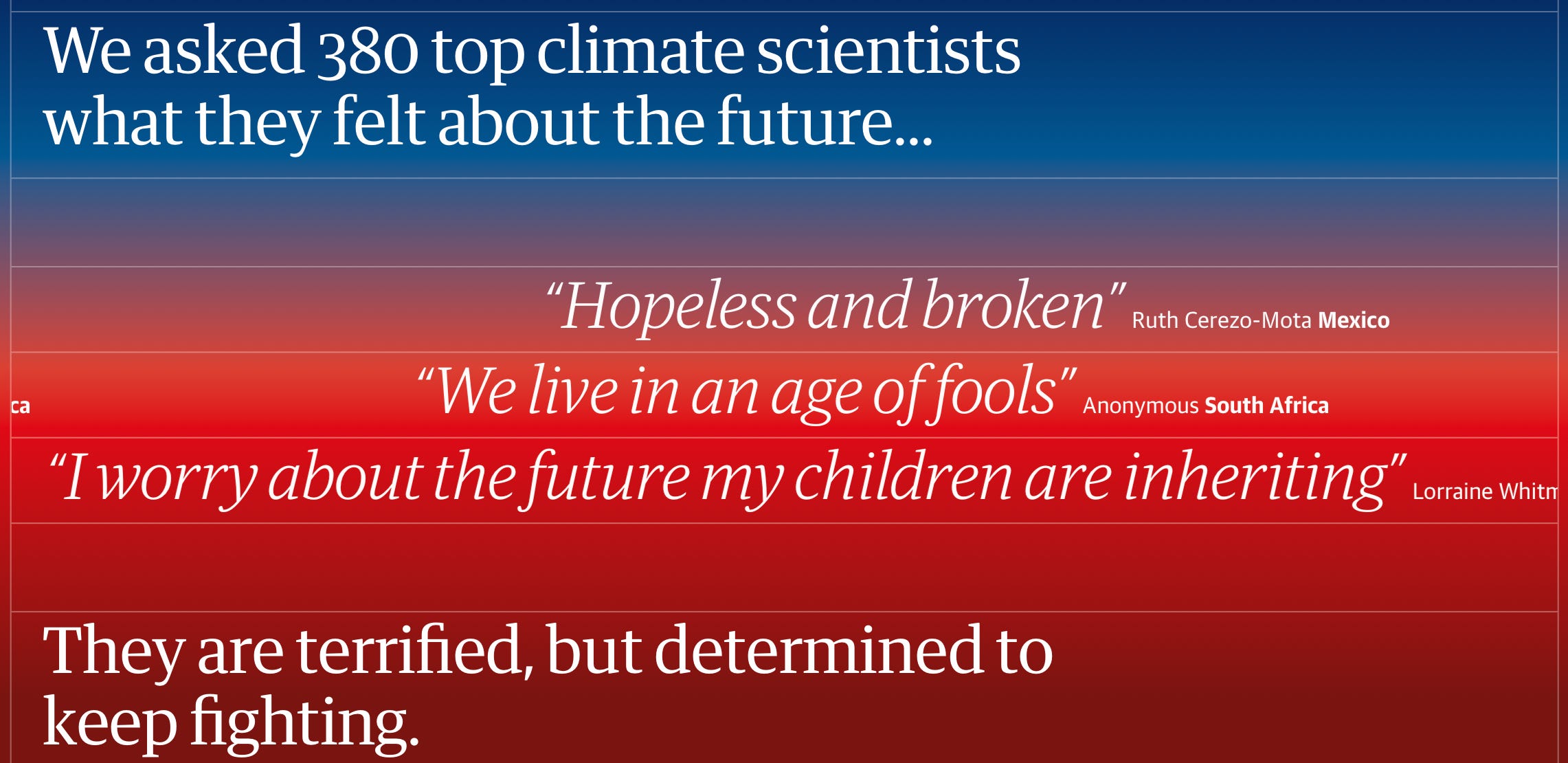 📰 "An exclusive Guardian survey of hundreds of the world’s leading climate experts has found that: