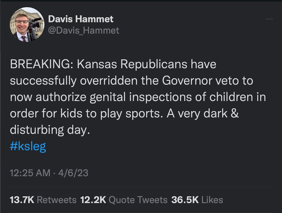 The most insane form of all this? The GOP wants to check kids genitals. Yes, really. We’re going to discuss that. But first, see what it is. An acceleration. A spiraling out of control. The fanatics are drunk with power, mad with hate and rage. They are turning America into their fascist dystopia, in surreal ways now. Checking kids private parts? What happens after that?