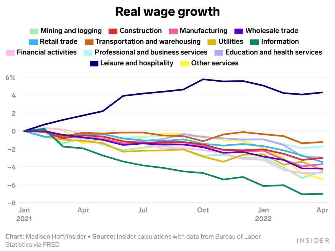 Hollywood writers are on strike, because their real incomes have fallen by around 25% over the last decade. Meanwhile, Netflix’s CEOs took home $50 million each…last year…for running the company into the ground. Think about how perverse that is. In what universe should anyone earn $50 mil for much of anything — much less literally tanking a company? This is a metaphor for our economy: ultra-rich become giga-rich by skimming off the gains, leaving everyone else getting poorer, fast, and they do it, worse, by not creating much of real value in the first place, maybe even, LOL, destroying billions in value, like Netflix’s CEOs did.